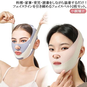 料理・家事・育児・読書をしながら装着するだけ! フェイスラインを引き締めるフェイスベルト2枚セット。マジックテープで引き締め度を調節でき、装着も取り外しもとても簡単!ストレッチ性が良くて、顔のツボを圧迫しない安心設計で