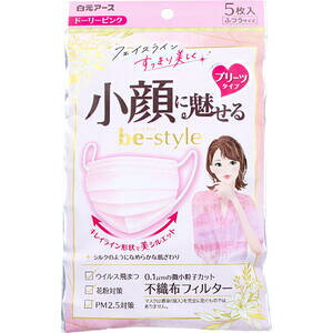 白元アース ビースタイル 小顔に魅せる不織布マスク プリーツタイプ ふつうサイズ ドーリーピンク 5枚入 商品説明 『白元アース ビースタイル 小顔に魅せる不織布マスク プリーツタイプ ふつうサイズ ドーリーピンク 5枚入』 フェイスライ