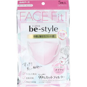 白元アース ビースタイル 小顔に魅せる不織布マスク プリーツタイプ ふつうサイズ ドーリーピンク 5枚入 商品説明 『白元アース ビースタイル 小顔に魅せる不織布マスク プリーツタイプ ふつうサイズ ドーリーピンク 5枚入』 フェイスライ