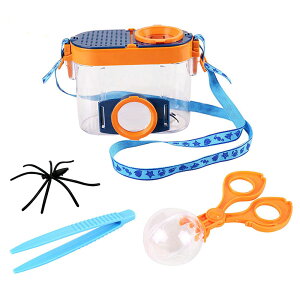 虫かごセット:観察レンズ付き虫かごです!(観察レンズとピンセット、ベルト付き)丈夫でしっかりした作りなので長く使えます。 上部と側面の二重拡大鏡:両方の拡大鏡は直径1.5インチ(37mm)で、上部は2.6倍の倍率、側面は4.5倍の倍率で