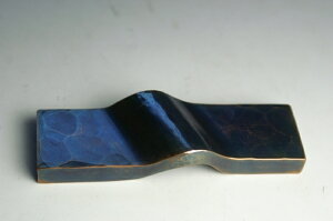 シンプルなデザインに紫金色が美しい 純銅の文鎮。 職人が鎚で叩いて表現する大鎚目模様が大胆でモダン。 銅自体を紫色に発色させた色合いも美しい。 小ぶりの品のよい文鎮です。 バラける書類押えや、本のページとめなど 書斎での作業