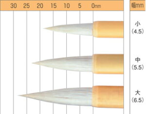 穂先がよくきき、強弱のある線が引ける画筆。腰の強い鼬毛を混ぜており、穂先を使って細部を描くとき、先がよくきき、強弱のある線が引け、力強さの出せる画筆です。