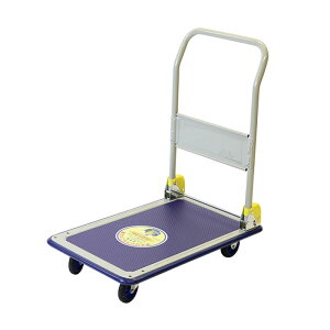 標準普及型スチール製台車。ハンドル折りたたみ式で車載用、省スペース保管に。積載荷重150kg。・ハンドル折りたたみ部に指詰め事故の発生を抑える安全機能(特許)が付いています。・ハンドル取り付け位置の台座内部に補強金具が入ってい
