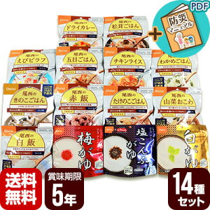 【送料無料・同梱可】 尾西食品のアルファ米、全14種類をセットでお届けいたします。 ●セット内容 「白飯」「五目ごはん」「赤飯」「わかめごはん」「きのこごはん」「白がゆ」「梅がゆ」「...