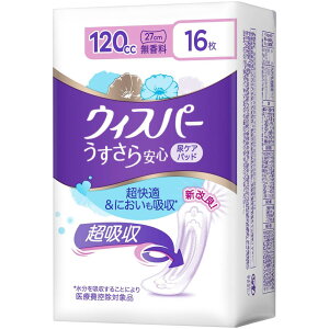 サイズ:120cc◆商品名:ウィスパーうすさら安心 120cc 16枚 無香料 (尿漏れパッド 尿とりパッド 女性用)【中量用】サイズ/長さ27cm吸水量目安/120cc日常生活動作レベル/1_一人で歩ける商品紹介...