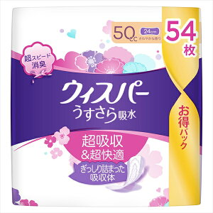 ◆商品名:[大容量]ウィスパー うすさら吸水 50cc 38枚 (吸水ナプキン 尿漏れパッド 女性用) 【少量用】超吸収、超快適、超消臭。ぎっしり詰まった「強力吸収体」だから、しっかり吸収。超スピード消臭技術...