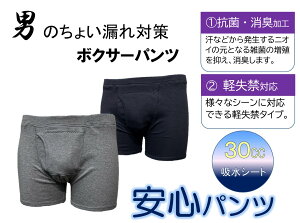 商品詳細 商品名 軽失禁 安心 あんしんボクサー 30CC吸水シート内蔵 ボクサー 1枚 対象者 ・メンズ(男性・紳士) ・ちょっと尿漏れが気になる方 ・薄めの色のずぼんを履かれる方 ・綿100%を好まれる方 ・お肌の敏感な方 サイズ...