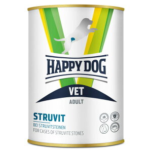 HAPPY DOG VET ストルバイト(尿石ケア)ウェット缶は、ストルバイト結石症の愛犬のために成分調整された食事療法食です。マグネシウムとリンの含有量を制限し、メチオニンなど尿pH値を酸性化する原材料を使用したレシピで...