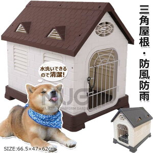 〔商品詳細〕 サイズ:約幅60×奥行き75×高さ66cm 入り口サイズ(約):26×41cm 重量:6.5kg 材質:プラスチック 組立式ドッグハウス 雨風にも強い!プラスチック製犬小屋 木材の小屋
