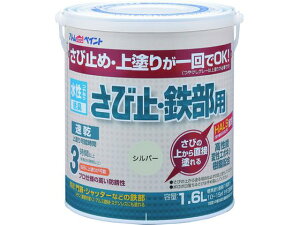 水性さび止・鉄部用 1.6L シルバー 用途:鉄骨・鉄扉・門扉・フェンス・物置・シャッター等の鉄部、トタン(屋根を除く)、アルミ建材、ステンレス等の上塗り兼用さび止め 塗り面積:約10~15m2(畳枚数換算:約8枚)(1回塗りさ