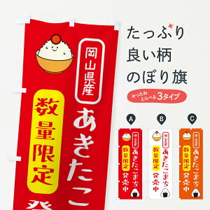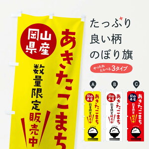 XF3W のぼり旗 あきたこまち数量限定・岡山県産 ●のぼり旗の内容 :のぼり旗 あきたこまち数量限定・岡山県産 ●印刷 : フルカラーダイレクト印刷 ●基本サイズ : 60cm×180cm...