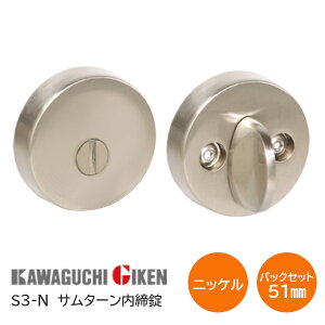 商品詳細 メーカー 川口技研 / GIKEN 商品名 サムターン内締錠 品番 S3 仕上 ニッケル(N) 対応扉厚 28mm〜40mm バックセット 51mm 付属品 ストライク / トロヨケ / 本...