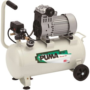 100V で使える 1馬力のオイルレス小型コンプレッサー。エアー工具の使用や塗装、空気入れ、ごみの吹き飛ばしなど、プロ整備の必需品。オイルレス低騒音タイプ。