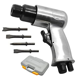 UPstore エアーハンマー エアハンマー 強力スプリング チゼル4種類付属 握りやすいグリップとトリガー 専用ケース付き 斫り 剥がし 錆落とし 切断 解体 (SV/シルバー) コンパクトボディながら超強力なエアハンマー...