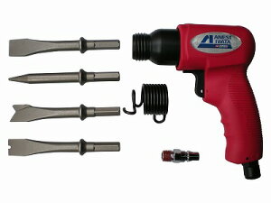 アハンマー。スポット斫りに適します。交換も簡単なチゼルは4種類セットしてあり様々な用途で使えるエアー工具です。コンクリート 石材 モルタル タイル の斫りに。窓枠 溶接 塗装 の剥がしに。土間 基