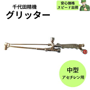 千代田精機のガス切断器 グリッター、中型、アセチレン専用、低圧式です。薄板の切断に適しています。新JIS規格準拠品。 【特徴】 ◎ノンスパッター方式の切断火口 ◎使い易いアルミダイカスト製グリップ ◎取替えが簡単なバルブスピン