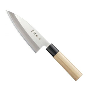 サイズ:刃渡り105mm ●鋼:白鋼 ●柄:水牛柄 ※左利き用 出刃包丁は、大きい魚を2枚、3枚におろしたりするのに適しています。魚や鳥などの固い骨を切るのには必ず出刃包丁を使用して下さい。