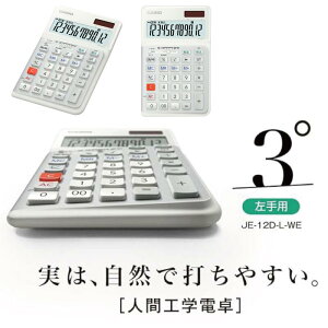 【人間工学電卓の特長】 3°の傾きと垂直キーにより左手で電卓を打ちやすく。 人に寄り添ったやさしいデザイン。 人が電卓に合わせるのではなく、電卓が人に合わせる。 自然な手・腕の状態で打ちやすい構造 人間工学階段キー。 日数計算