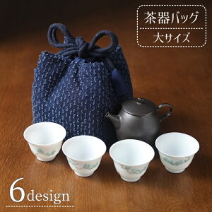 茶器用の巾着袋です。 落ち着いた、上品でおしゃれなデザイン。 茶器の収納や持ち運び用にどうぞ。 ※茶器は付属しておりません。 【サイズについて】 画像をご参照ください。 【カラーについて】 生産ロットにより柄の出方や色の濃淡が