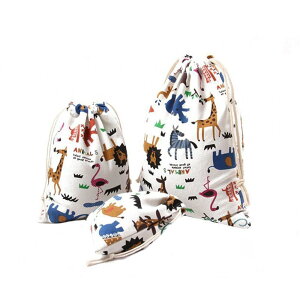 巾着 袋 (大 中 小)和柄 コットン 麻 おしゃれ 布 きんちゃく 小物 雑貨 オリジナルmini メッセージカード付き 絵描き DIY (動物) 結婚式 二次会 パーティ等のシーンにも 手の良い3サイズ大...