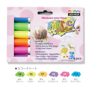 布用マーカー 『布描きしましょII 6色 Aセット』 MARVY マービー 濃色布にもあざやかに描ける♪ 濃い色の布地にも描ける、耐水性に優れた布用マーカーです。 アイロン不要で重ね塗りも出来ます。 色あせしにくく...