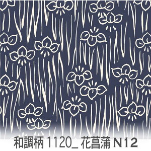 1120-n12_花菖蒲文様(はなしょうぶもんよう)_ネイビー(n12) 細長い葉と可憐な花を配した『花菖蒲文様』 端正で清らかな印象を持つ、日本らしい気品ある伝統柄です 菖蒲文様, 菖蒲柄, 伝統柄, 着物柄, 和風デザイン, イン...