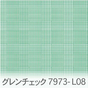 7973-l08_グレンチェック_エメラルドグリーン(l08) グレンチェックは、伝統的なチェックパターン柄の一つであり、特徴的な小さな正方形のパターンが織り成すチェック模様です。 グレンチェックはシンプルでクラシックな印象を与えながら