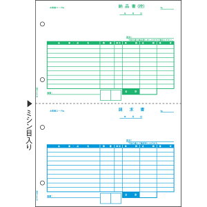 レーザープリンタ用帳票。 A4サイズ2分割(納品書(控)/請求書)。 その他の納品書はこちらから 入数 500枚 サイズ A4タテ 210×297mm ミシン目切り離し後のサイズ 210×148.5mm 面付け...