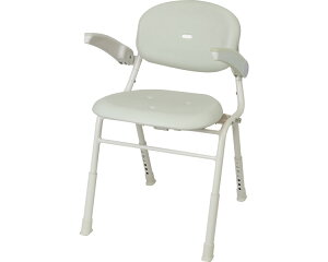 【アズワン AS ONE】看護、介護用品 介護・リハビリ 入浴介助用品 ●外寸法はコンパクトながら、アーチ型肘掛けの採用で体格のよい方も楽に座っていただけます。 ●座面後方のレバーを下げて、背もたれを持ち上げるだけの簡単折りたたみ