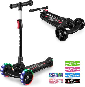 キッズスクーター キックスクーター キックボード 三輪車 子供用 幼児用 3階段調節可能 後輪ブレーキ 高さ調整可能 LED 光るホイール 誕生日 ギフト プレゼント 軽量 持ち運び便利 多機能