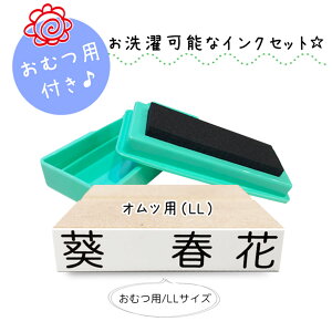 【セット内容】 ・木製スタンプ LLサイズ ・スタンプ台 ・補充インク 【書体】 丸ゴシック体 ※“き、さ、り”は繋がっていません。 【スタンプサイズ】 ・LL⇒文字サイズ 10mm×55mm 横型 (おむつ用) (台木サイズ 12m...