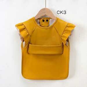 ほかにはめったいに見えないロング丈、お食事の時、太もももカバーしてくれて、食べこぼしによるパンツの汚れ心配もなし◎さらに、ポケットつきで、食べこぼしをキャッチするから、自由に食べさせるのも安心表は撥水加工で汚れてもサ