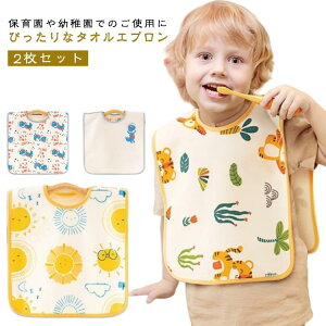 2枚セット 子供用タオルエプロンです。 歯磨きや洗顔時の服濡れ防止に役立ちますすっぽりと被るタイプのタオルエプロンなので着脱も簡単。前後両方使用可能。幼児向けに設計された防水よだれかけは、忙しい親にとって必須のアクセサリ