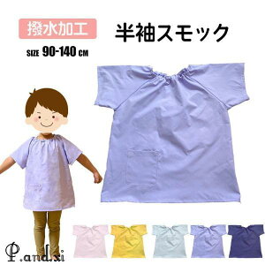 シンプルデザインの子供用半袖スモックです。お名前を書けるネームタグ付き!首まわりはゴム仕様になっているのでお子様1人でも着替えが楽ちん習字や図画工作などの時間に活躍!衣類の汚れ予防に◎撥水加工なのも嬉しいポイントですポ