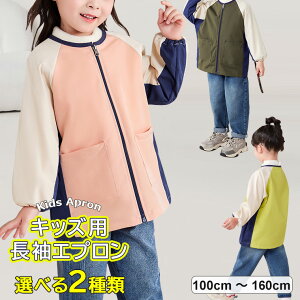 様々なシーンで大活躍間違いなしのキッズ用長袖エプロンのご紹介です♪ 3色展開 スモック キッズエプロン 子供用 バイカラー 長袖 エプロン 男の子 女の子■ 商品説明お洒落なバイカラーデザインのキッズ用エプロンです。 汚しやすい袖