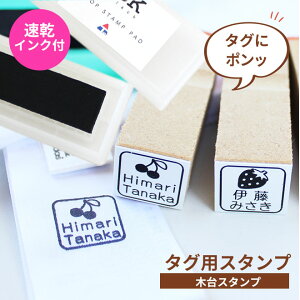 ペンだと滲んでしまってうまく書けない時などに最適♪ タグにポンッと押すだけで簡単にキレイに押せます。 ■内容 お名前スタンプ印 1本 マルチインク 1個(ブラック・ピンク・ブルーから選べる) ■サイズ 18x18mm(台
