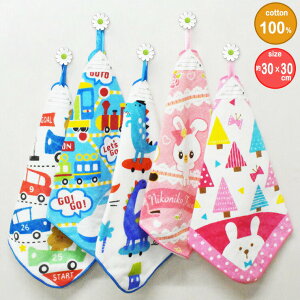 素材 綿100% サイズ 約30×30cm 特徴 お子様におすすめ!人気ののりもの柄、かわいいどうぶつ柄などがプリントされたさらっとした肌触りのタオルハンカチです★ ●ループ付き 園やご自宅で使いやすくフックにかけれて便利です...