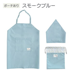 収納できる袋がついたエプロンと三角巾のセットです。シンプルなデザインなので低学年から高学年まで長く使えます。 首とウエスト部分は締め付け感のないゴム仕様なのでサッとかぶるだけ!三角巾の後ろ側もゴム仕様なの