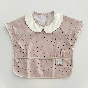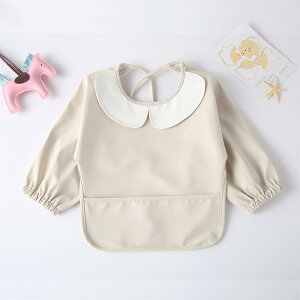 【ベビー 食事用エプロン】ひとりでご飯を食べる練習にぴったりな長袖タイプのお食事エプロンです。袖、胸素、腹部の配色使いが可愛く、一枚でお洒落に着こなせます。お洒落な色合いとデザインで離乳食時だけでなく...