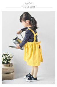 背中で交差しているので肩からずり落ちにくく、紐がうまく結べない小さな子どもでも、着脱簡単!子供用エプロンもオシャレにシンプルで使いやすい無地タイプ、ナチュラルな風合いが