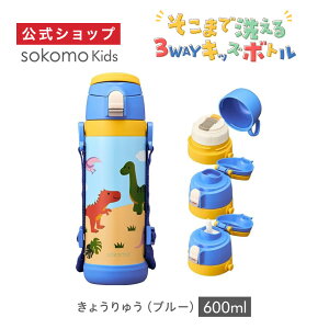 そこまで洗える水筒。Sokomo kids(ソコモ キッズ)ボトル 450ml / 600ml。本体の底が取り外しでき、中までしっかり洗えるステンレス製水筒!持ち運びに便利な取っ手とストラップが付いて安心...