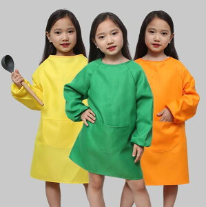 80-140cm!シンプルデザインの子供用長袖スモックです。習字や図画工作などの時間に活躍!衣類の汚れ予防に◎撥水加工なのも嬉しいポイントです♪ポケット付きでハンカチなど小物を入れられますよ。お食事、お絵かき...