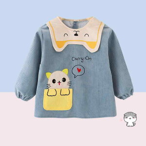 おしゃれな長めのエプロン,ポケット付きで洋服も汚れず、床に落ちるのも防ぎ、掃除やお洗濯がとっても楽です! 袖のよだれかけ全体が防水で、防水性に加えて、汚れ、臭いにも強い。袖付きなので、汚しやすい袖部分を手首までカバーし