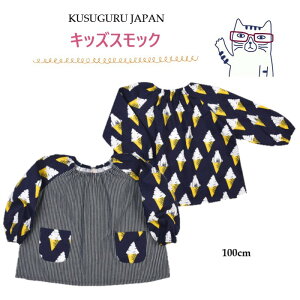こども用(100cm)の長袖スモックです。 衿口ゴムで、ゆったりサイズのスモック プリントはソフトクリームと白くまです♪ ソフトクリームみたいな白くまさんを探してね ■カラー:コン ■サイズ:100cm...