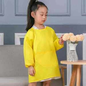 太ももまでカバーできるロング丈スモック。 ほかにはめったいに見えないロング丈、お食事の時、太もももカバーしてくれて、食べこぼしによるパンツの汚れ心配もなしさらに、ポケットつきで、食べこぼしをキャッチするから...