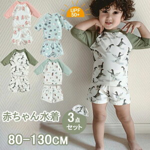 キッズ 水着 男の子 セット ラッシュガード 3点セット 帽子付き UPF50+ 紫外線対策 水陸両用 セパレート 半袖 ショートパンツ キャップ ベビー水着