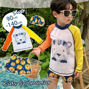 キッズ 男の子 水着 セパレート ベビー水着 長袖 ラッシュガード キッズ 上下セット 3点セット 獅子 可愛い おしゃれ 90 100 110 120 130 140 日焼