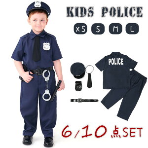 ハロウィン 衣装 子供 男の子 警察官 制服 ハロウインコスチューム 子供用 6点セット 警官 衣装 コスチューム 帽子付き 10点セット 保