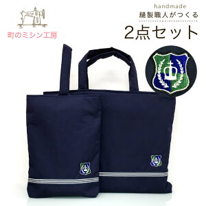 入園入学2点セットの生地柄(デザイン)の特徴 光沢のある上質な糸を使用した紺色の生地に、 オリジナルの刺繍エンブレムと白いラインのシンプルなデザイン。 清潔感のある、落ち着いた雰囲気です。 入園入学2点セットの特徴 安心の日本製