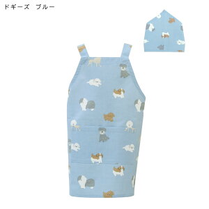柄デザインエプロンセット キュートな表情に癒されます。 エプロンとバンダナ・巾着の3点セット。 幼稚園〜小学校中学年 身長100〜130cmのお子様向け。 エプロン・バンダナはゴム仕様になっており簡単